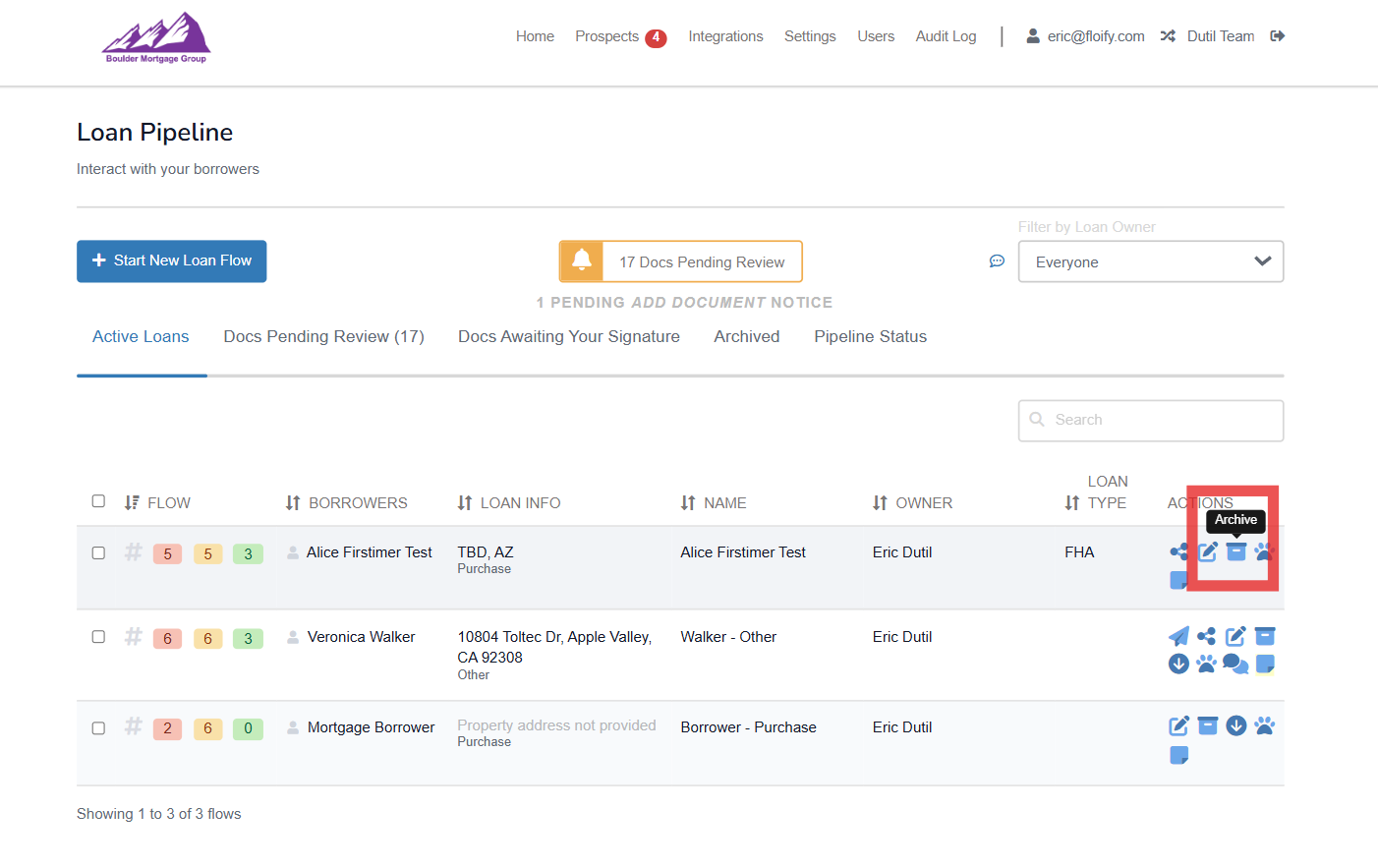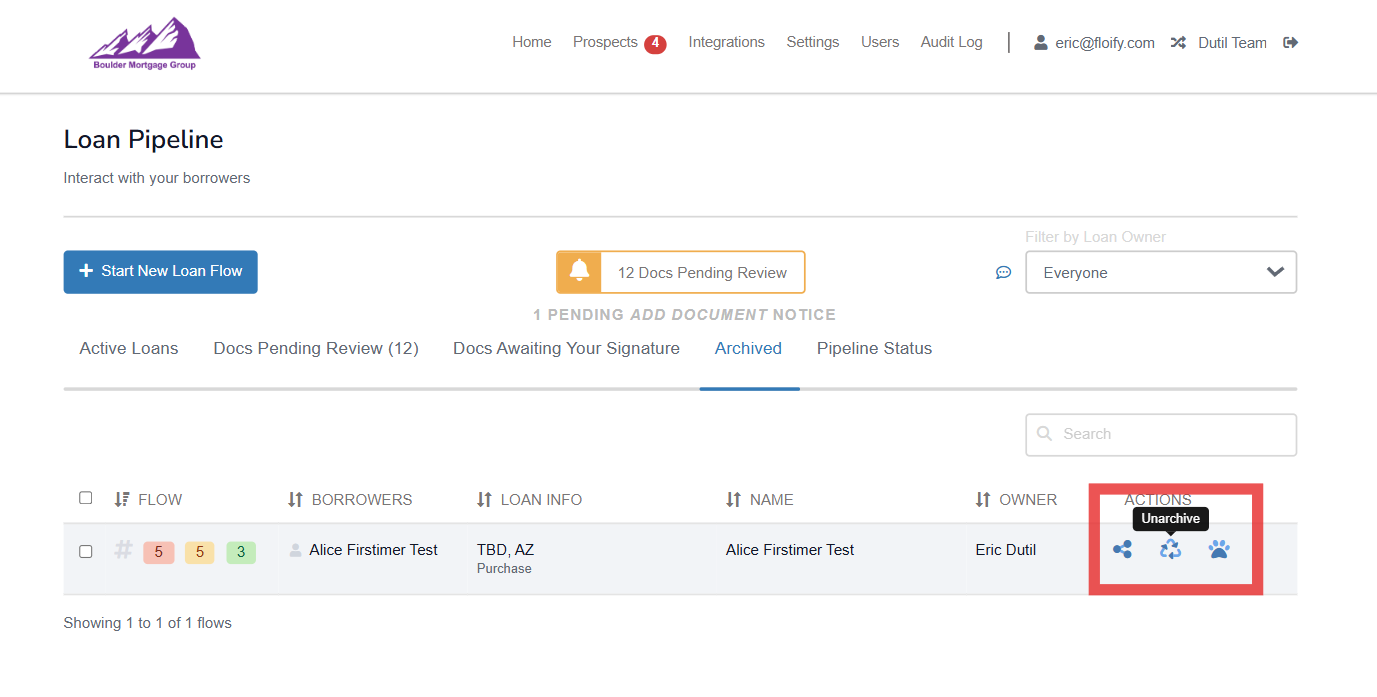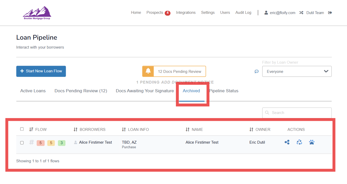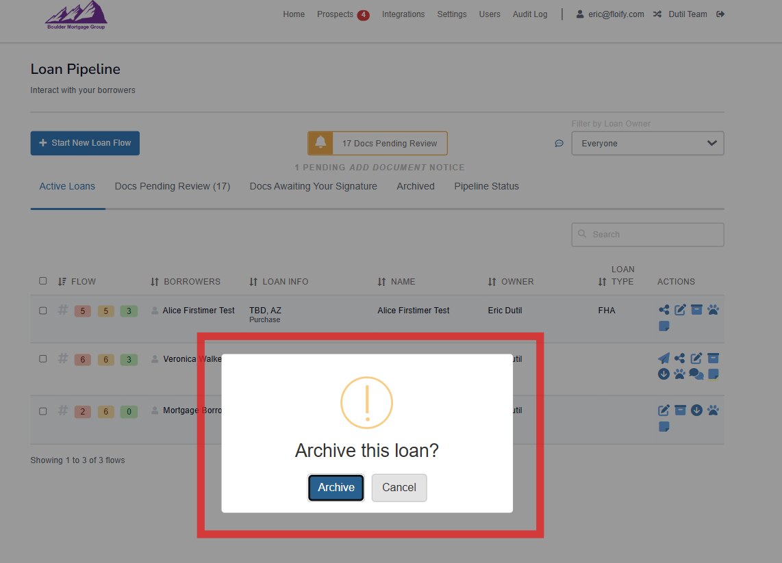 Archiving a loan flow moves the loan from your active loan pipeline and allows you to focus on the loans your are currently working on.