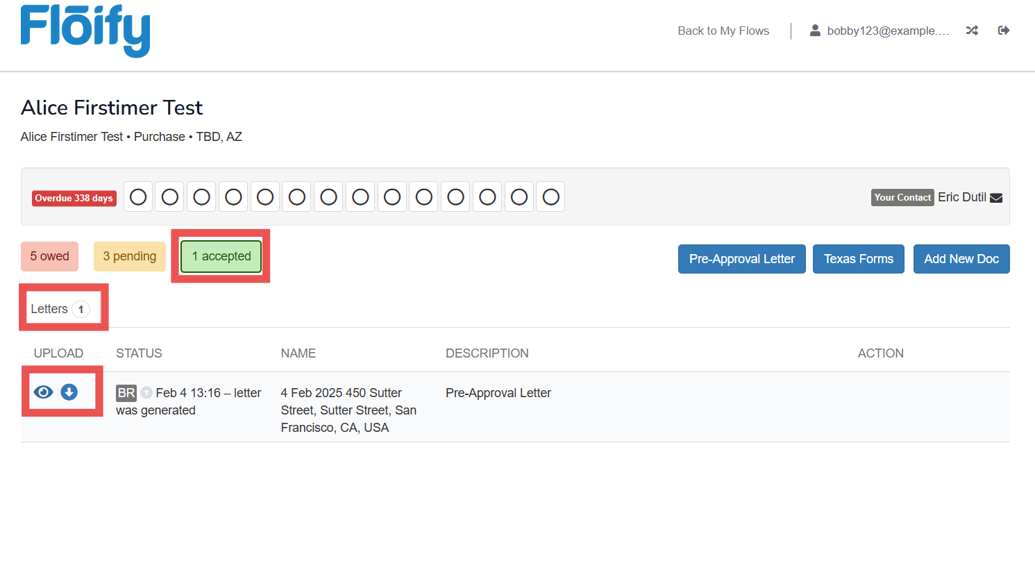 The letter will be visible to you in the Docs Accepted in a new Letters tab. You can view or download your new letter on the left hand side:
