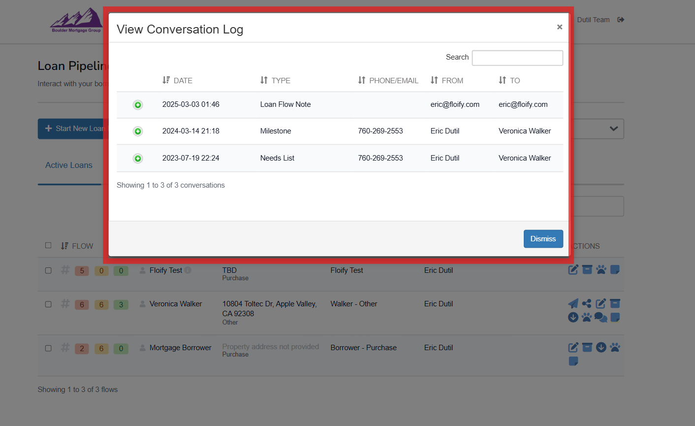 You'll be able to see any notes added listed here in addition to any text message notifications sent out to the borrower: