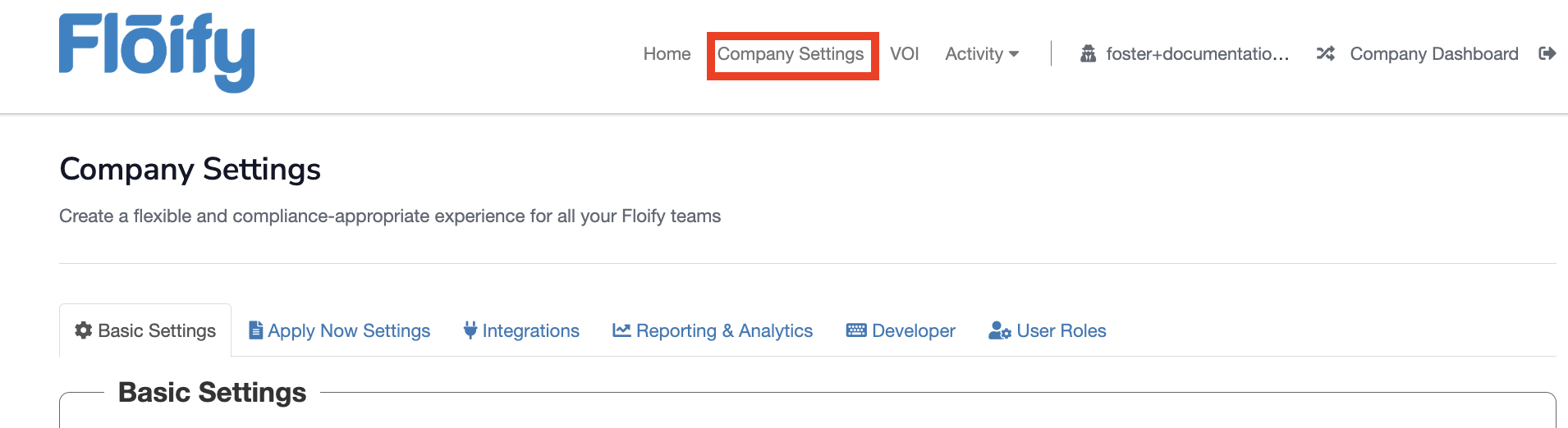 The Company E-Sign settings allow for you to set up and manage Floify E-Sign.
