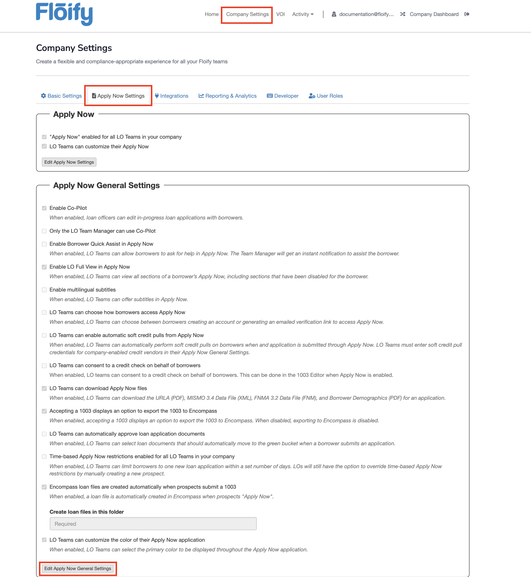 From the company dashboard, navigate to Company Settings > Apply Now Settings > Apply Now General Settings and press Edit Apply Now General Settings: