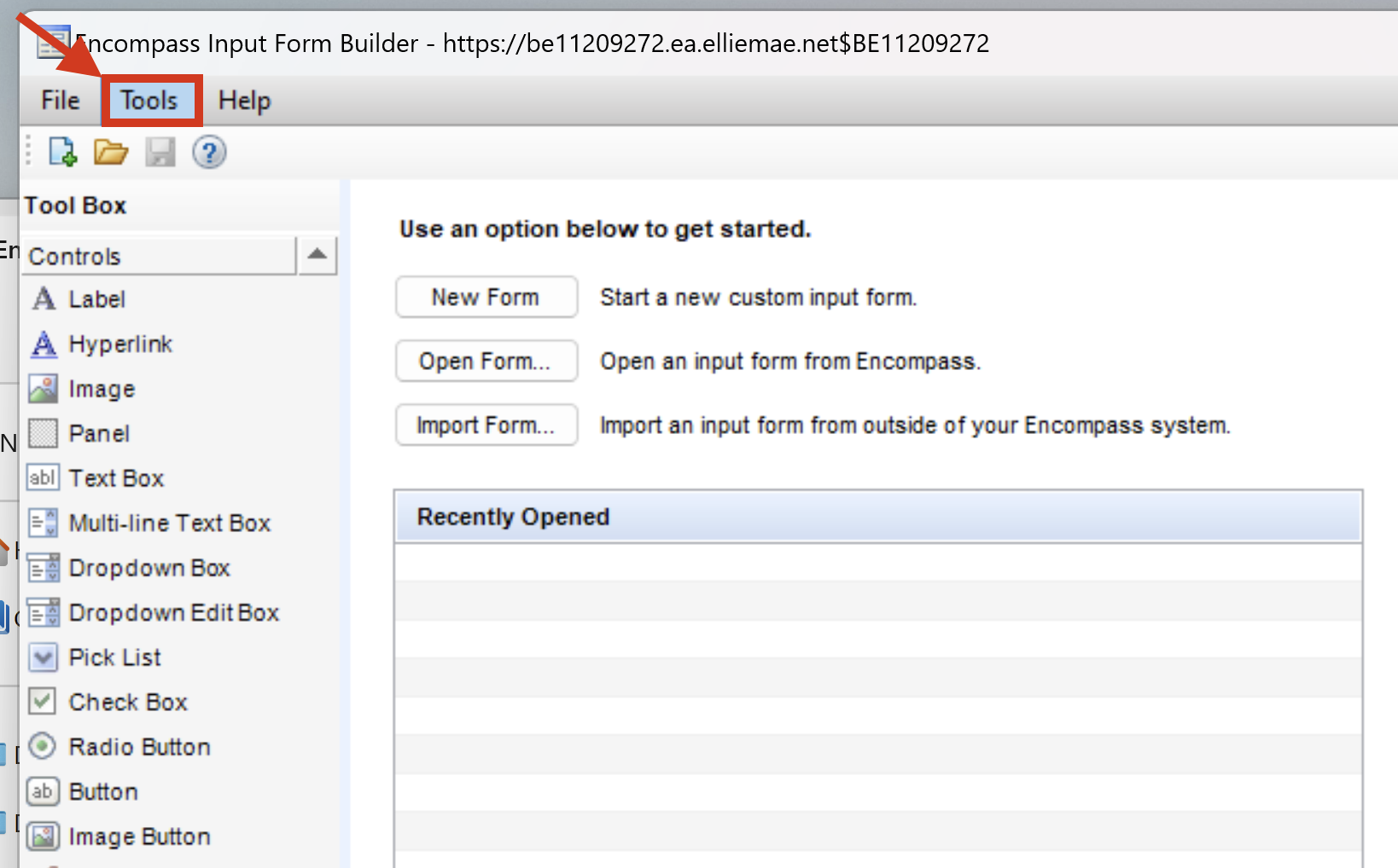 Once Form Builder opens, click Tools in the upper-left corner: