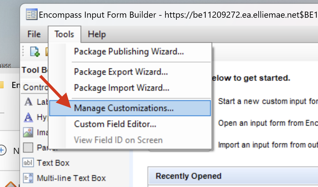 Open up the Encompass Form Builder tool: