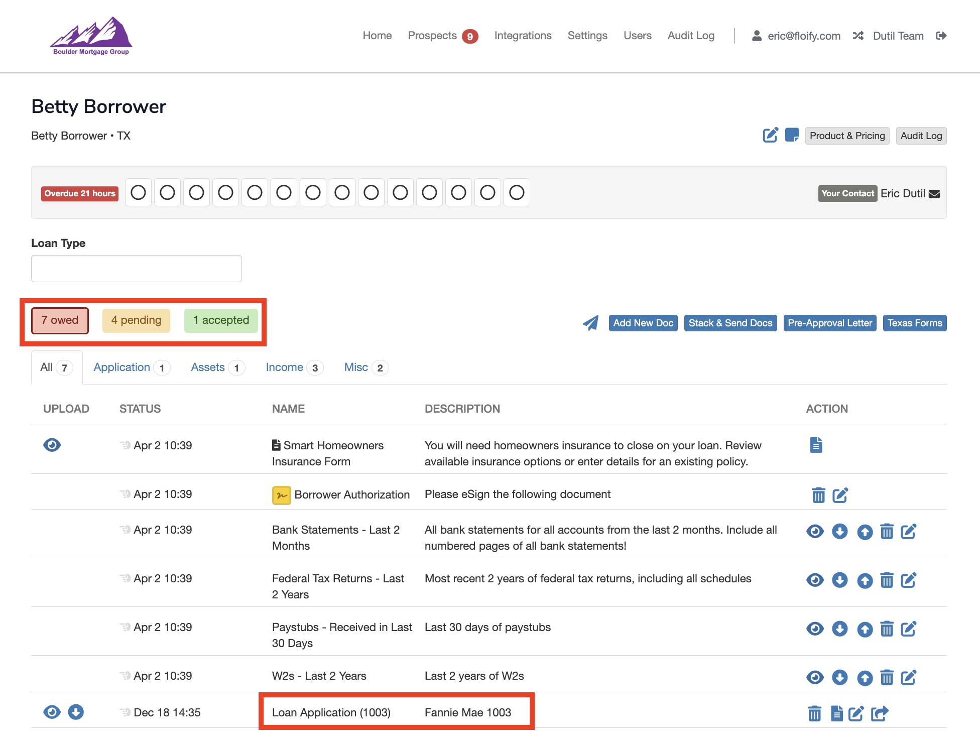 The loan pipeline is where you will manage all of your borrowers, including reviewing application and document data, making adjustments to the loan flow, and locating any additional information regarding the loan.